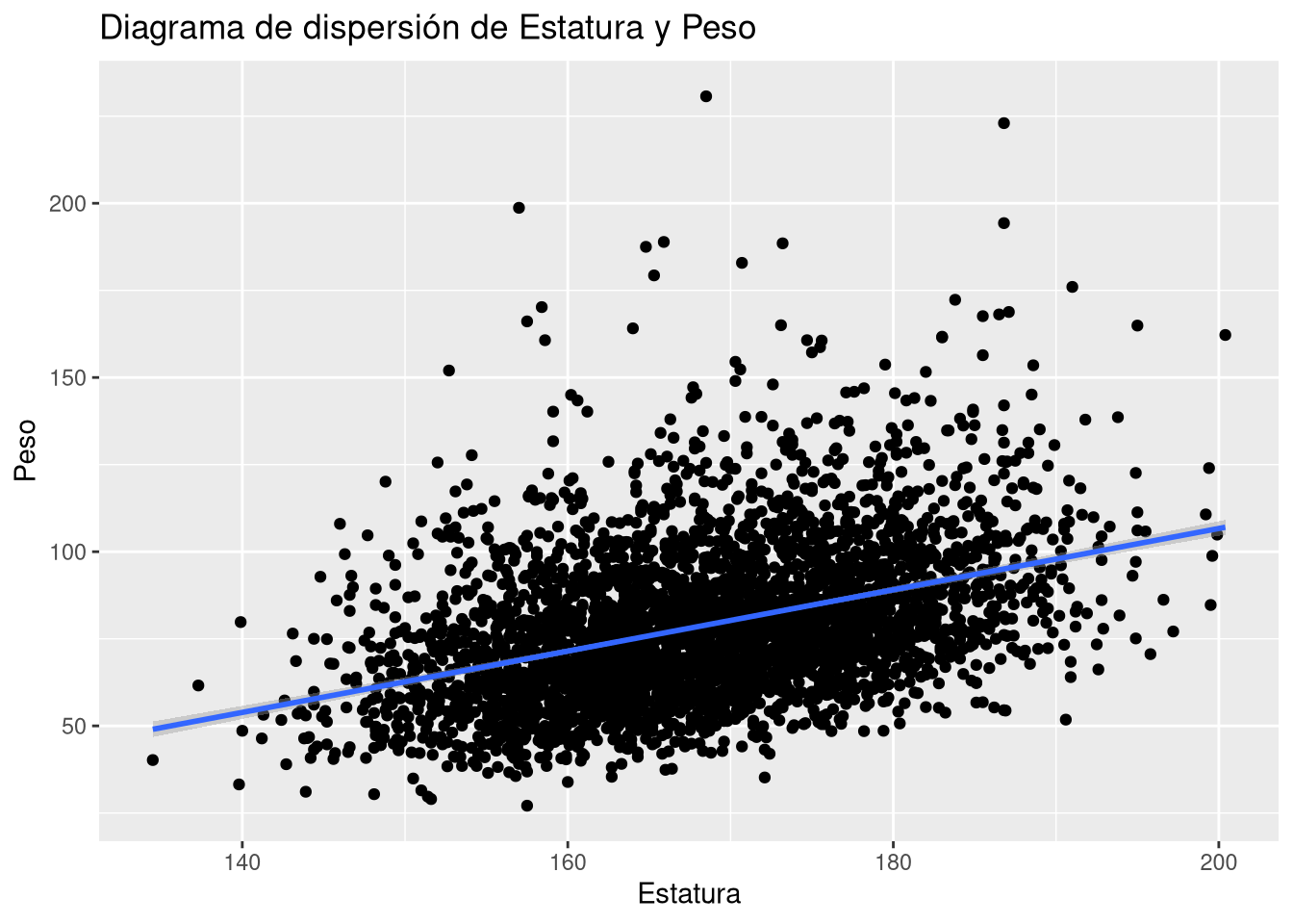 labs(title = "Diagrama de dispersión de Estatura y Peso")